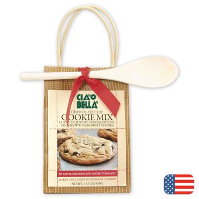 Make sure customers melt every time they hear your name: Give them the fun, all-in-one Chocolate Chip Cookie Mix, personalized with your company logo. Attractive and colorful packaging: DIY kit comes in a designer kraft bag with a ribbon-tied wooden mixing spoon. Perfectly put together:Individually-packaged dry mix makes 12 chocolate-chip cookies, 18 oz. total. Made in the USA