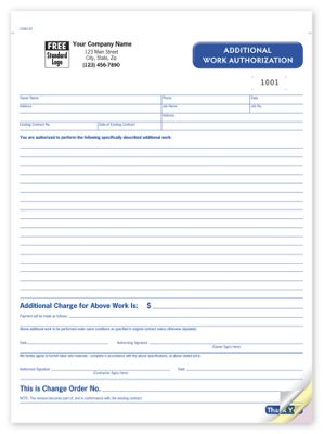 Eliminate confusion with professional work authorization forms! Clearly cover additional requests in writing - before you start. Get the details: Preprinted areas for owner and job information, description of work, payment method & more. Track customer acceptance: Signature line for customer authorization prevents disputes. Create clean records: Carbonless forms stay tightly aligned for clear, clean copies.