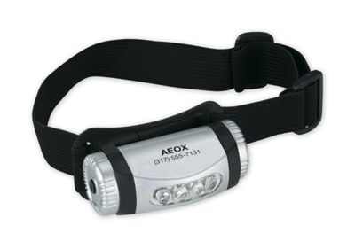 Gomer Head Lamp : Brilliant light that gets the job done--including keeping your business name ultra-visible: the Gomer Head Lamp. Smart, convenient design: 4 LED lights on an adjustable elastic headband. Easy hands-free operation: Four light/illumination level settings. Ready to get to work: Tough ABS plastic; AAA batteries included.
