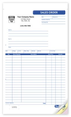 Writing up orders just got easier with our sales order business forms! Preprinted headings and roomy description area make filling orders quick and accurate. Take complete orders. Preprinted areas for quantity, description, amount, payment method and more. Get the details. 20 lines for writing up larger sales. Stay organized. Bottom copy stays bound in book for a permanent record; in books of 50, 4-part forms are in books of 25.